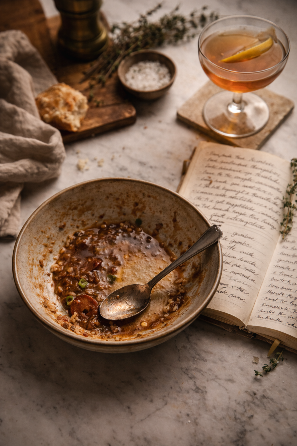 A working Creole kitchen, shared slowly, with care. One dish, one drink, one soundtrack — every week.
